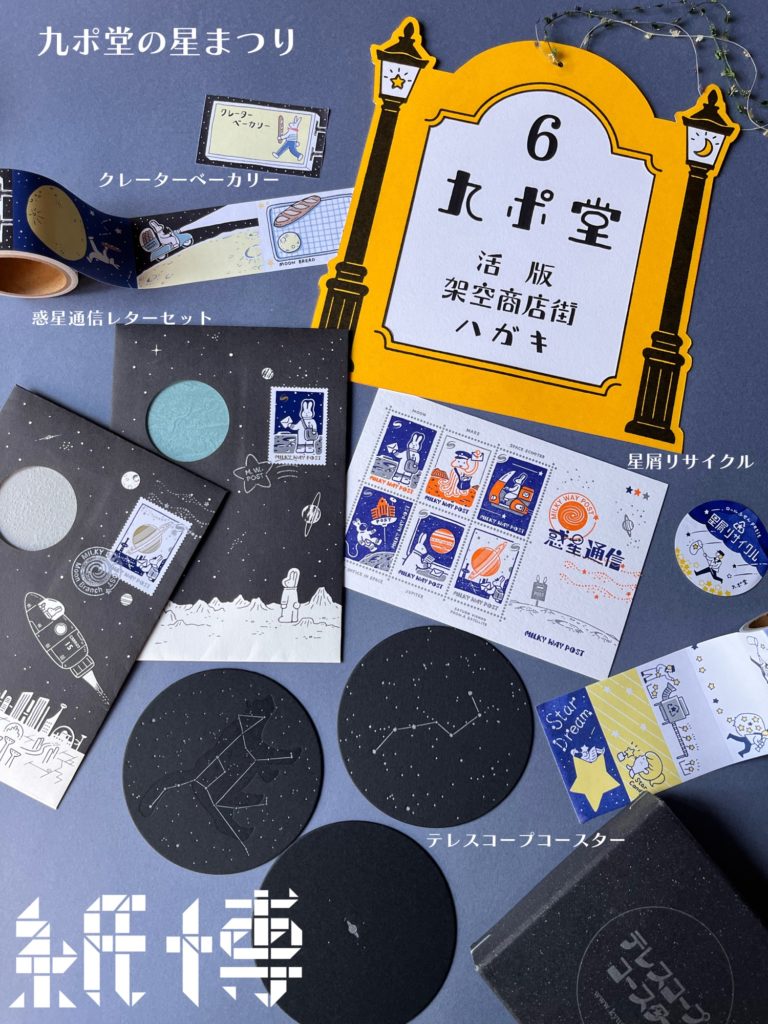 架空のお店・郵便局・デパートなどの物語のある紙雑貨の他、望遠鏡をのぞいたイメージのテレスコープコースターなどの新商品も販売予定です。